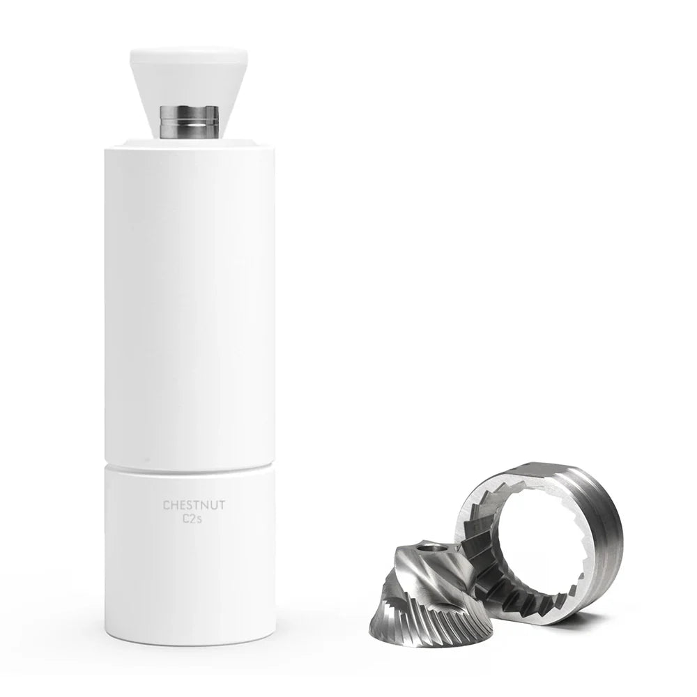 This might look like a perfume bottle from outer space, but it’s actually a manual coffee grinder that the coffee world will not shut up about. Foldable handle, solid grip, durable materials—the whole thing is built like it knows it’s elite.
